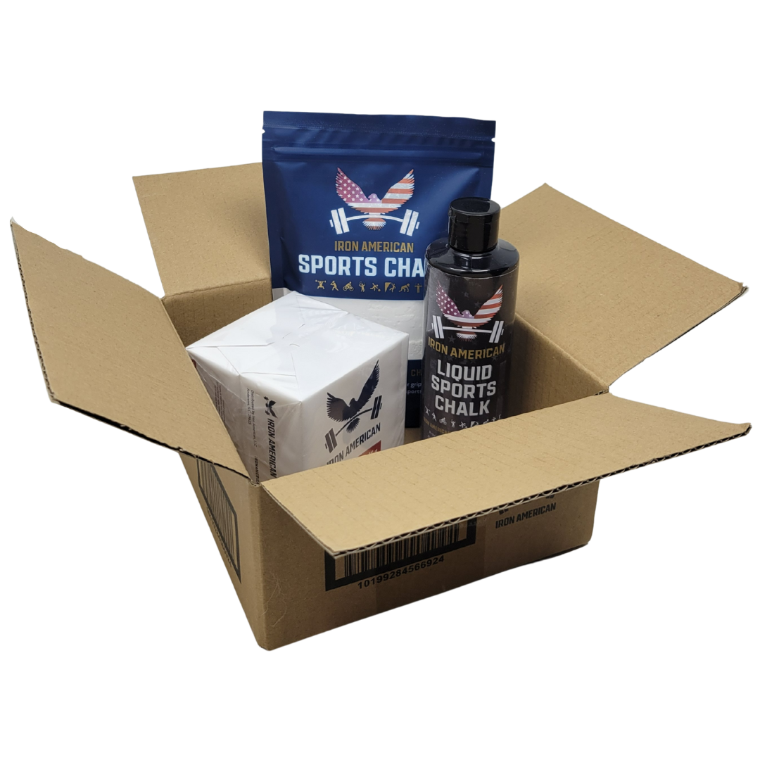 (2) Blocks(1) 100g Bag Loose chalk(1) 250ml Bottle Liquid Chalk(1) 50ml Travel bottle liquid chalk
